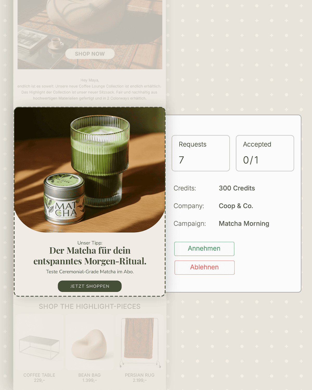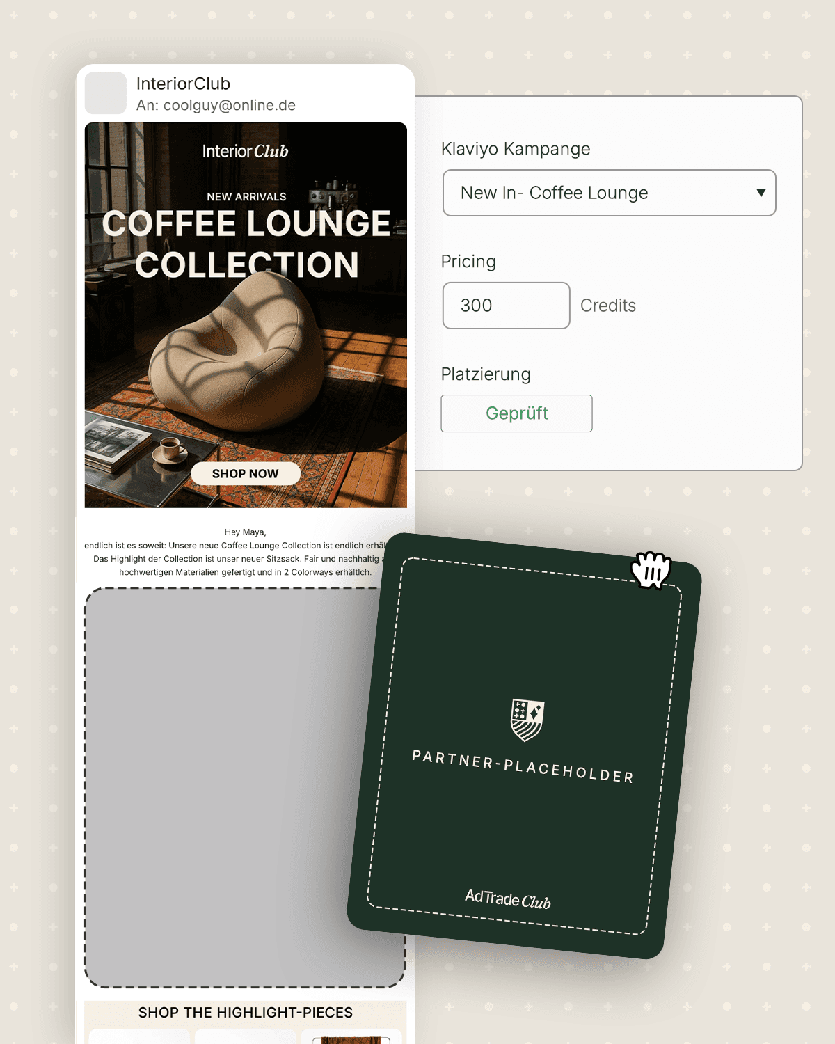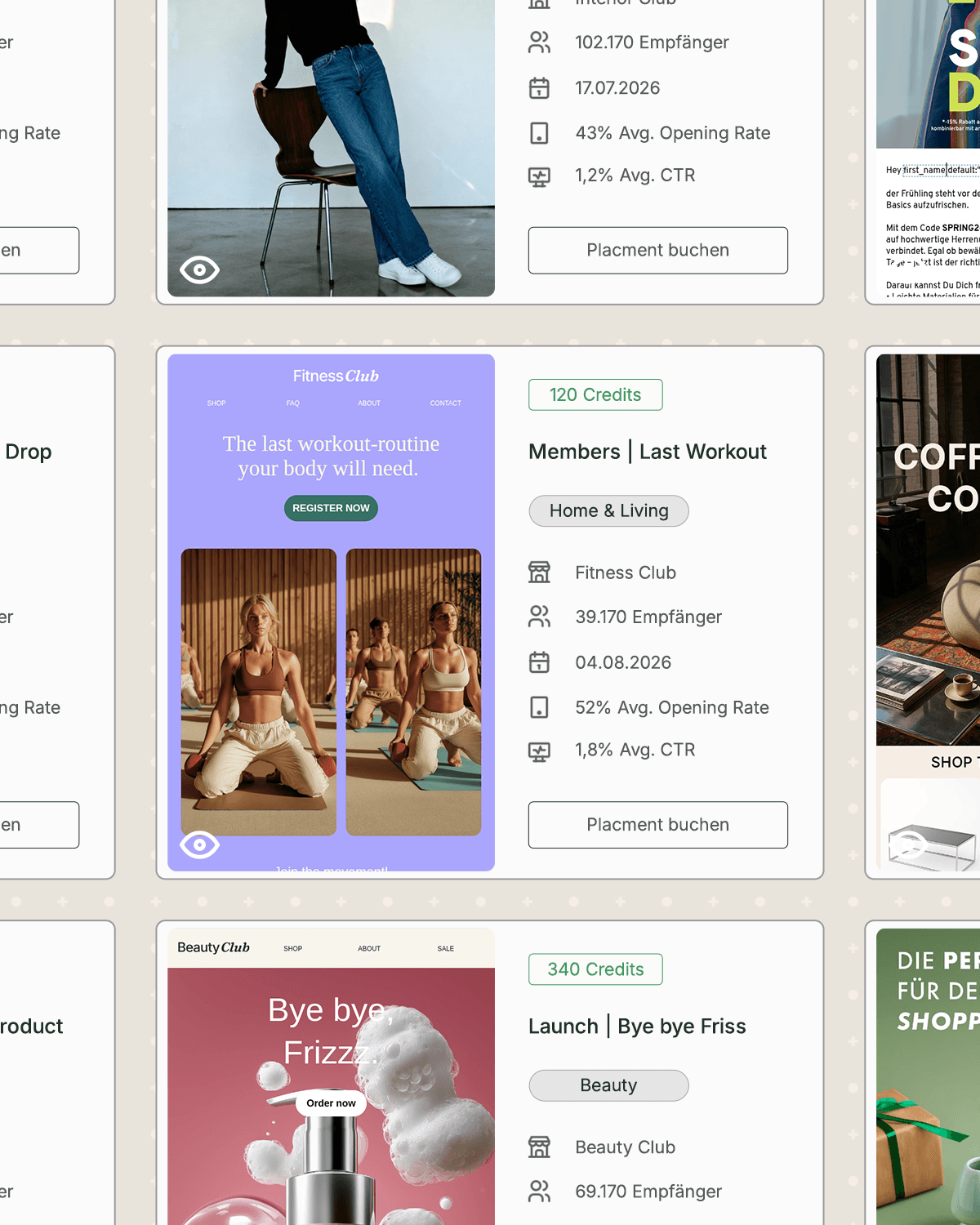 Platziere deine Marke in wenigen Klicks in den Newslettern starker Brands. Transparent, skalierbar, ohne Mediabudget.